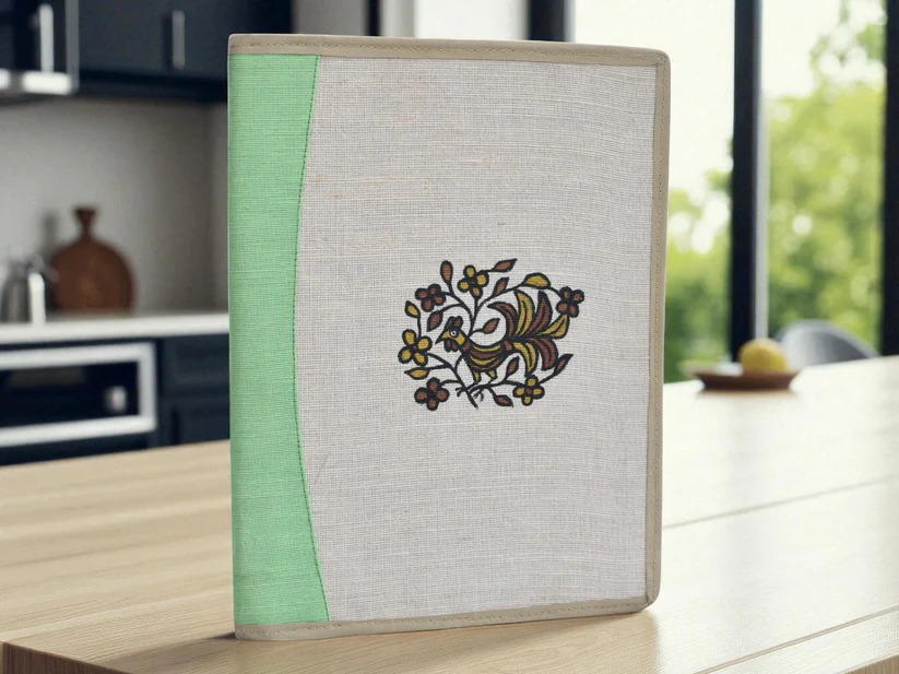 This jute folder features authentic Sohrai painting, blending traditional artistry with practical design. Ideal for meetings and office use, it offers a durable, eco-friendly solution to organize documents while showcasing unique cultural craftsmanship. Its natural texture and vibrant hand-painted motifs make it a sophisticated accessory for professionals seeking both functionality and style